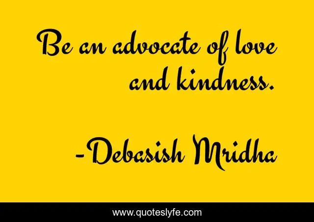This page presents the quote "Be an advocate of love and kindness.". Author of this quote is Debasish Mridha. This quote is about love, debasish-mridha, philosophy, be-an-advocate-of-love, quotes, inspirational, enthusiasm, kindness, debasish-mridha-m-d,.