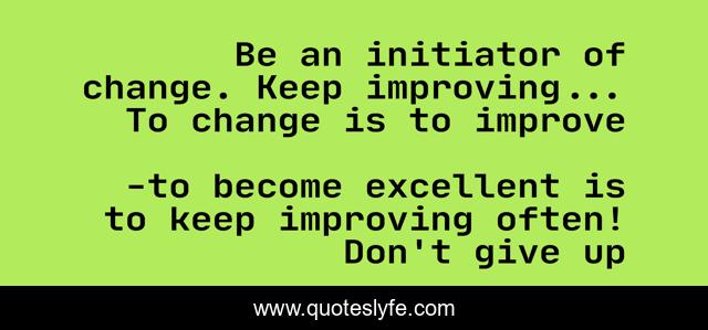 This page presents the quote "Be an initiator of change. Keep improving... To change is to improve". Author of this quote is to become excellent is to keep improving often! Don't give up. .