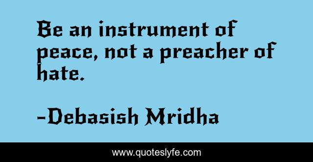 This page presents the quote "Be an instrument of peace, not a preacher of hate.". Author of this quote is Debasish Mridha. This quote is about life, love, knowledge, inspirational, intelligence, philosophy, wisdom, quotes, affection,.
