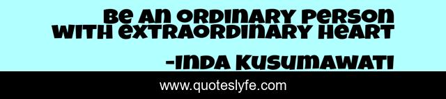 This page presents the quote "Be an ordinary person with extraordinary heart". Author of this quote is Inda Kusumawati. .