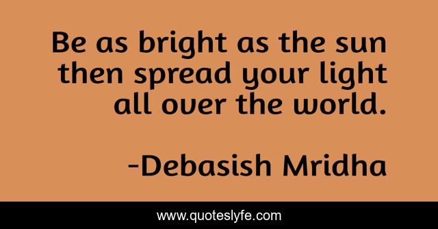 This page presents the quote "Be as bright as the sun then spread your light all over the world.". Author of this quote is Debasish Mridha. This quote is about life, love, knowledge, inspirational, intelligence, philosophy, wisdom, quotes, affection,.