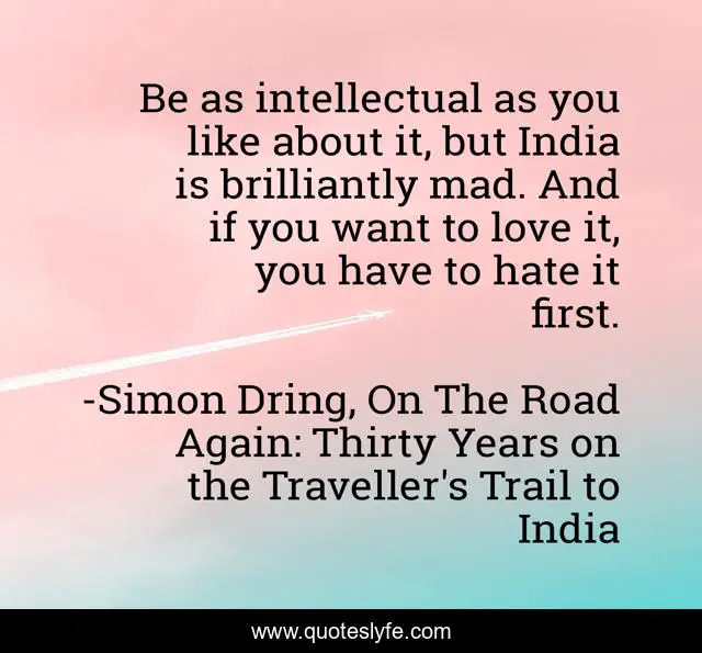 "Simon Dring, On The Road Again: Thirty Years on the Traveller's Trail to India Quotes." Quoteslyfe.com, 2025. Fri. 05 Dec. 2025. <https://www.quoteslyfe.com/quote/Be-as-intellectual-as-you-like-about-137582>.