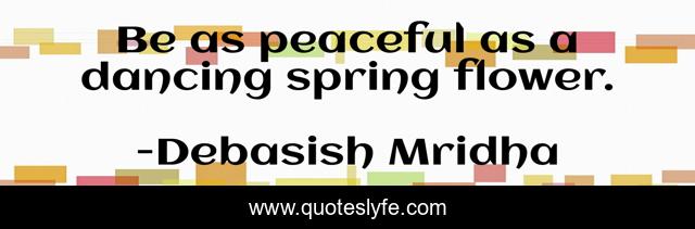 This page presents the quote "Be as peaceful as a dancing spring flower.". Author of this quote is Debasish Mridha. This quote is about spring-flower, spring, philosophy, debasish-mridha, quotes, inspirational, peaceful, enthusiasm, debasish-mridha-m-d,.