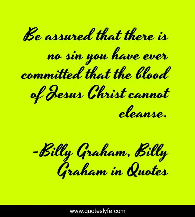 This page presents the quote "Be assured that there is no sin you have ever committed that the blood of Jesus Christ cannot cleanse.". Author of this quote is Billy Graham, Billy Graham in Quotes. This quote is about cleanse, sin, blood-of-jesus-christ, billy-graham,.