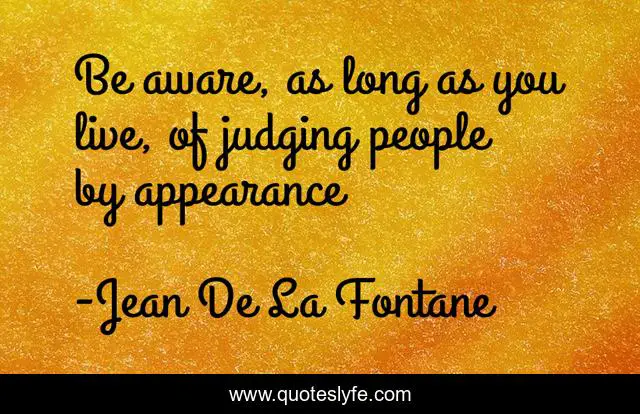 This page presents the quote "Be aware, as long as you live, of judging people by appearance". Author of this quote is Jean De La Fontane. .