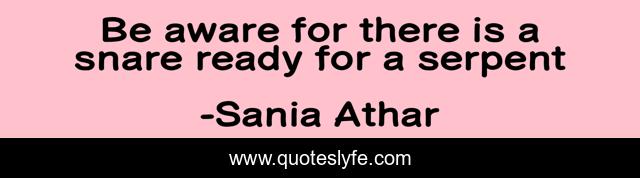 This page presents the quote "Be aware for there is a snare ready for a serpent". Author of this quote is Sania Athar. .