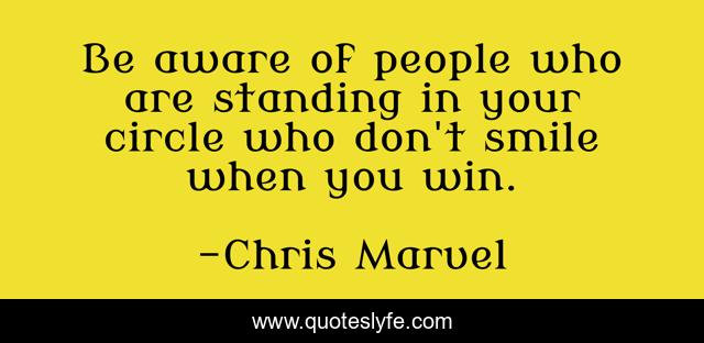 This page presents the quote "Be aware of people who are standing in your circle who don't smile when you win.". Author of this quote is Chris Marvel. This quote is about criticize, love, relationship, judgement, friends, affection, enemies,.