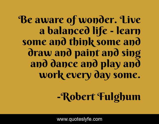 This page presents the quote "Be aware of wonder. Live a balanced life - learn some and think some and draw and paint and sing and dance and play and work every day some.". Author of this quote is Robert Fulghum. This quote is about art, dance, life-lessons, learn, sing, balance,.