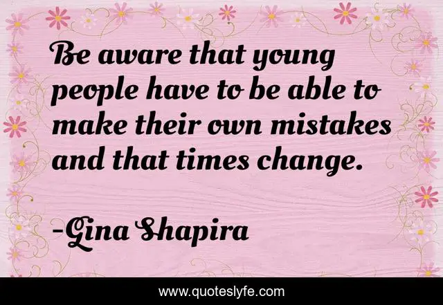 This page presents the quote "Be aware that young people have to be able to make their own mistakes and that times change.". Author of this quote is Gina Shapira. This quote is about failures, mistakes,.