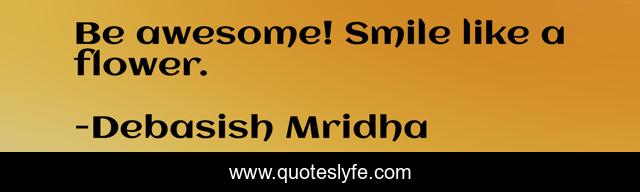 "Debasish Mridha Quotes." Quoteslyfe.com, 2025. Fri. 05 Dec. 2025. <https://www.quoteslyfe.com/quote/Be-awesome-Smile-like-a-flower-194954>.
