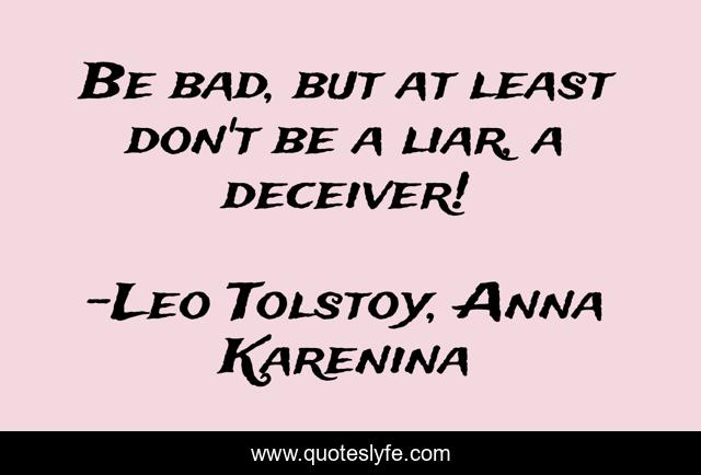 This page presents the quote "Be bad, but at least don't be a liar, a deceiver!". Author of this quote is Leo Tolstoy, Anna Karenina. This quote is about bad, liar,.