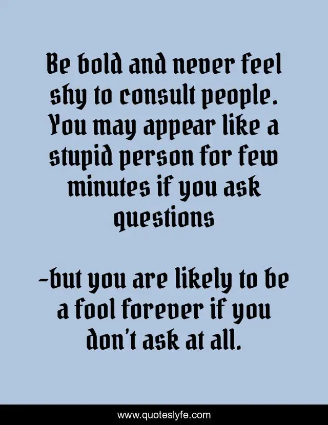 "but you are likely to be a fool forever if you don’t ask at all. Quotes." Quoteslyfe.com, 2025. Fri. 05 Dec. 2025. <https://www.quoteslyfe.com/quote/Be-bold-and-never-feel-shy-to-129545>.