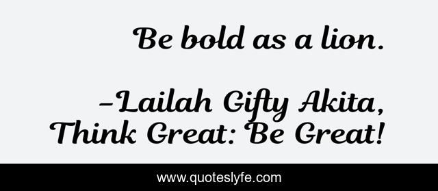 "Lailah Gifty Akita, Think Great: Be Great! Quotes." Quoteslyfe.com, 2025. Sat. 06 Dec. 2025. <https://www.quoteslyfe.com/quote/Be-bold-as-a-lion-91723>.