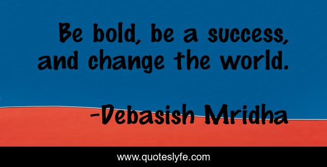 "Debasish Mridha Quotes." Quoteslyfe.com, 2025. Sat. 06 Dec. 2025. <https://www.quoteslyfe.com/quote/Be-bold-be-a-success-and-change-69062>.
