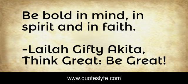 "Lailah Gifty Akita, Think Great: Be Great! Quotes." Quoteslyfe.com, 2025. Tue. 09 Dec. 2025. <https://www.quoteslyfe.com/quote/Be-bold-in-mind-in-spirit-and-91694>.