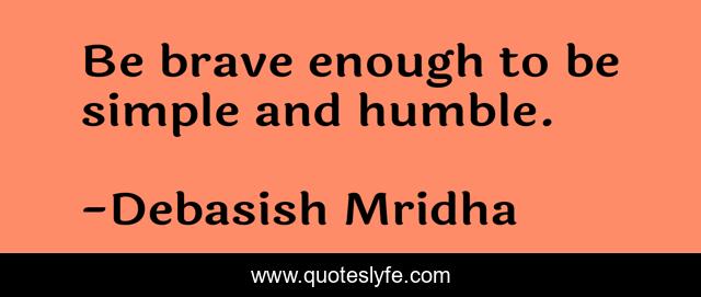 This page presents the quote "Be brave enough to be simple and humble.". Author of this quote is Debasish Mridha. This quote is about brave, simple, be-brave, humble, debasish-mridha, quotes, inspirational, enthusiasm, debasish-mridha-m-d,.