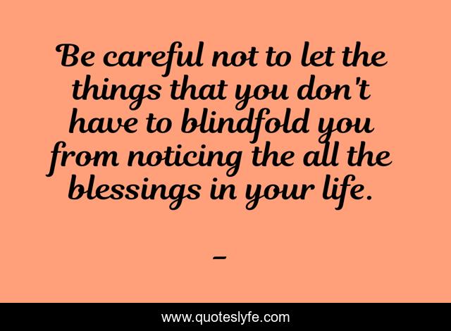 This page presents the quote "Be careful not to let the things that you don't have to blindfold you from noticing the all the blessings in your life.". Author of this quote is . This quote is about edmond-mbiaka, notice-your-blessings, counting-your-blessings, count-your-blessing, the-blessings-in-your-life,.