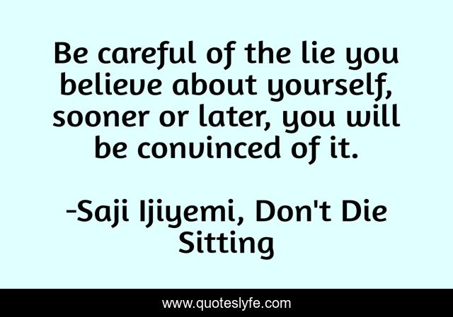 "Saji Ijiyemi, Don't Die Sitting Quotes." Quoteslyfe.com, 2025. Fri. 05 Dec. 2025. <https://www.quoteslyfe.com/quote/Be-careful-of-the-lie-you-believe-111617>.