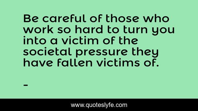 This page presents the quote "Be careful of those who work so hard to turn you into a victim of the societal pressure they have fallen victims of.". Author of this quote is . This quote is about victims, edmond-mbiaka, peer-pressure, pressures, fall-victim, societal-pressure,.