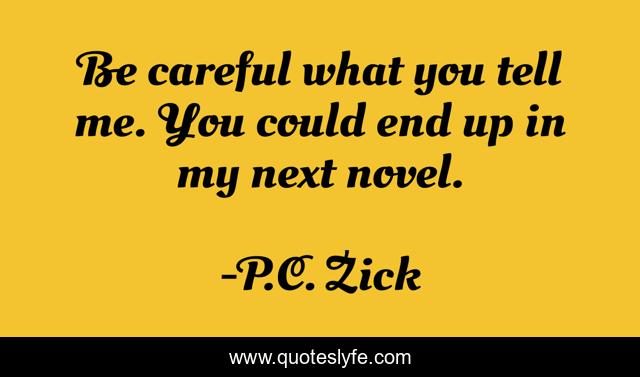 This page presents the quote "Be careful what you tell me. You could end up in my next novel.". Author of this quote is P.C. Zick. This quote is about quote, novel, humor,.