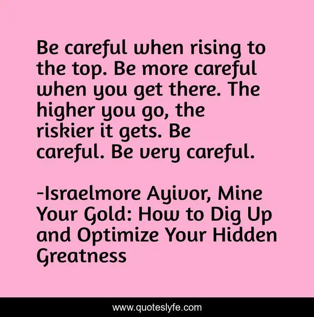 "Israelmore Ayivor, Mine Your Gold: How to Dig Up and Optimize Your Hidden Greatness Quotes." Quoteslyfe.com, 2025. Mon. 08 Dec. 2025. <https://www.quoteslyfe.com/quote/Be-careful-when-rising-to-the-top-129190>.