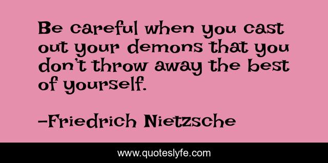This page presents the quote "Be careful when you cast out your demons that you don’t throw away the best of yourself.". Author of this quote is Friedrich Nietzsche. .