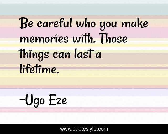 "Ugo Eze Quotes." Quoteslyfe.com, 2025. Fri. 05 Dec. 2025. <https://www.quoteslyfe.com/quote/Be-careful-who-you-make-memories-with-193318>.