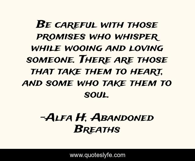 "Alfa H, Abandoned Breaths Quotes." Quoteslyfe.com, 2025. Mon. 08 Dec. 2025. <https://www.quoteslyfe.com/quote/Be-careful-with-those-promises-who-whisper-35340>.