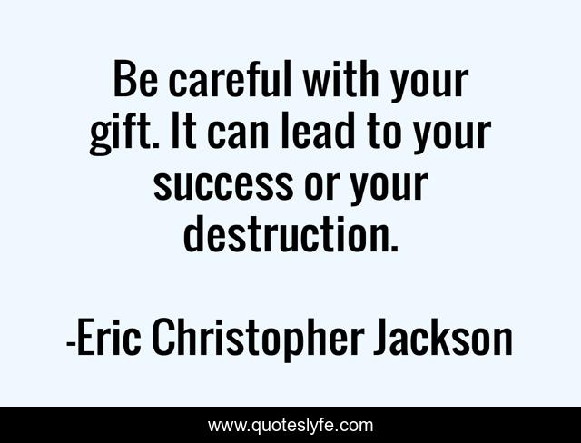 This page presents the quote "Be careful with your gift. It can lead to your success or your destruction.". Author of this quote is Eric Christopher Jackson. This quote is about pride, ego, success,.