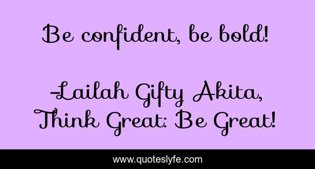 "Lailah Gifty Akita, Think Great: Be Great! Quotes." Quoteslyfe.com, 2025. Sat. 06 Dec. 2025. <https://www.quoteslyfe.com/quote/Be-confident-be-bold-142763>.