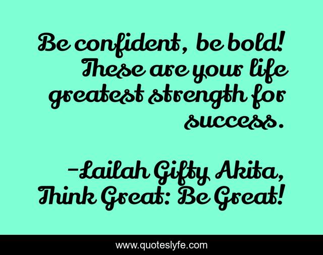 "Lailah Gifty Akita, Think Great: Be Great! Quotes." Quoteslyfe.com, 2025. Mon. 08 Dec. 2025. <https://www.quoteslyfe.com/quote/Be-confident-be-bold-These-are-your-91745>.