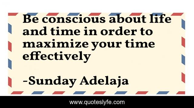 This page presents the quote "Be conscious about life and time in order to maximize your time effectively". Author of this quote is Sunday Adelaja. This quote is about life, blessing, finance, consciousness, conscious, money, work, job, joblessness,.