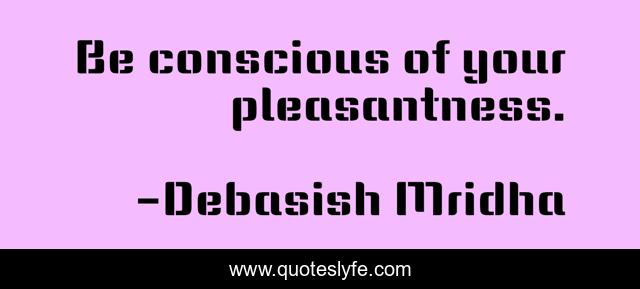 "Debasish Mridha Quotes." Quoteslyfe.com, 2025. Fri. 05 Dec. 2025. <https://www.quoteslyfe.com/quote/Be-conscious-of-your-pleasantness-23524>.