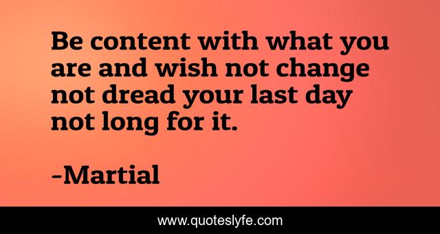 This page presents the quote "Be content with what you are and wish not change not dread your last day not long for it.". Author of this quote is Martial. .