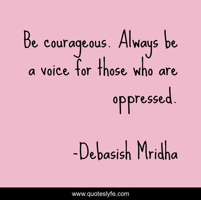 This page presents the quote "Be courageous. Always be a voice for those who are oppressed.". Author of this quote is Debasish Mridha. This quote is about be-courageous, philosophy, debasish-mridha, quotes, debasish-mridha-md, inspirational, who-are-the-oppressed, enthusiasm, be-a-voice,.
