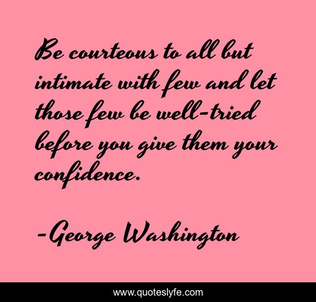This page presents the quote "Be courteous to all but intimate with few and let those few be well-tried before you give them your confidence.". Author of this quote is George Washington. .
