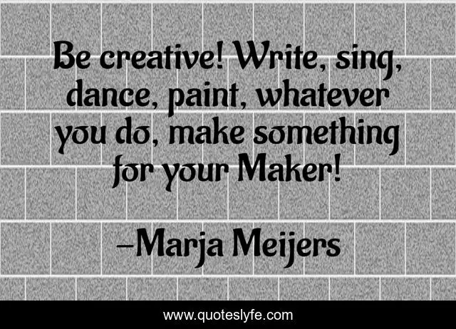 This page presents the quote "Be creative! Write, sing, dance, paint, whatever you do, make something for your Maker!". Author of this quote is Marja Meijers. .