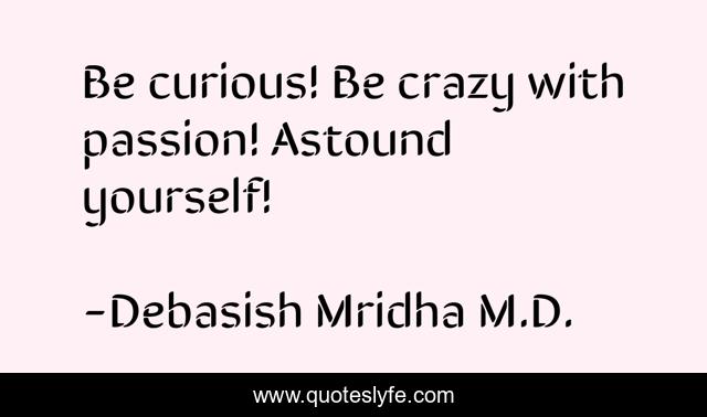"Debasish Mridha M.D. Quotes." Quoteslyfe.com, 2025. Mon. 08 Dec. 2025. <https://www.quoteslyfe.com/quote/Be-curious-Be-crazy-with-passion-Astound-92677>.