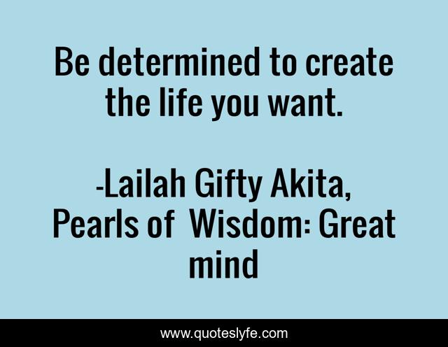 "Lailah Gifty Akita, Pearls of Wisdom: Great mind Quotes." Quoteslyfe.com, 2025. Sat. 06 Dec. 2025. <https://www.quoteslyfe.com/quote/Be-determined-to-create-the-life-you-107317>.