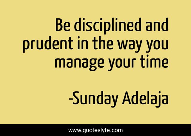 This page presents the quote "Be disciplined and prudent in the way you manage your time". Author of this quote is Sunday Adelaja. This quote is about discipline, life, blessing, finance, money, employment, work, prudence, time-management,.