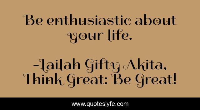 "Lailah Gifty Akita, Think Great: Be Great! Quotes." Quoteslyfe.com, 2025. Fri. 05 Dec. 2025. <https://www.quoteslyfe.com/quote/Be-enthusiastic-about-your-life-78433>.