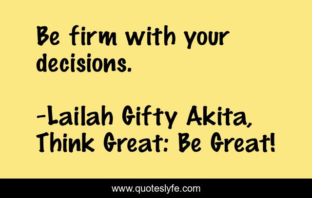 "Lailah Gifty Akita, Think Great: Be Great! Quotes." Quoteslyfe.com, 2025. Mon. 08 Dec. 2025. <https://www.quoteslyfe.com/quote/Be-firm-with-your-decisions-78405>.
