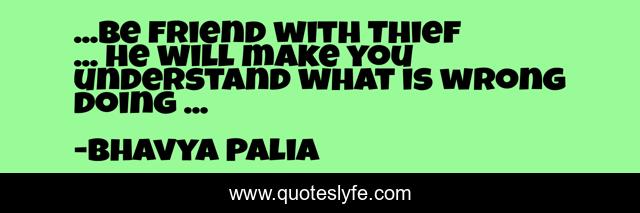 This page presents the quote "...Be friend with Thief ... he will make you understand what is wrong doing ...". Author of this quote is Bhavya Palia. This quote is about black-humor, quotes-about-life,.