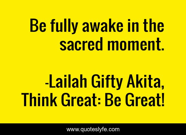 "Lailah Gifty Akita, Think Great: Be Great! Quotes." Quoteslyfe.com, 2025. Fri. 05 Dec. 2025. <https://www.quoteslyfe.com/quote/Be-fully-awake-in-the-sacred-moment-140355>.