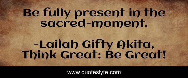 "Lailah Gifty Akita, Think Great: Be Great! Quotes." Quoteslyfe.com, 2025. Tue. 09 Dec. 2025. <https://www.quoteslyfe.com/quote/Be-fully-present-in-the-sacred-moment-97230>.