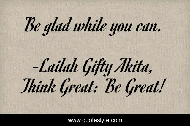 "Lailah Gifty Akita, Think Great: Be Great! Quotes." Quoteslyfe.com, 2025. Fri. 05 Dec. 2025. <https://www.quoteslyfe.com/quote/Be-glad-while-you-can-97281>.