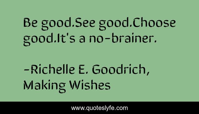 This page presents the quote "Be good.See good.Choose good.It's a no-brainer.". Author of this quote is Richelle E. Goodrich, Making Wishes. This quote is about good, richelle-e-goodrich, agency, choices, right, richelle, goodness, richelle-goodrich, right-and-wrong,.