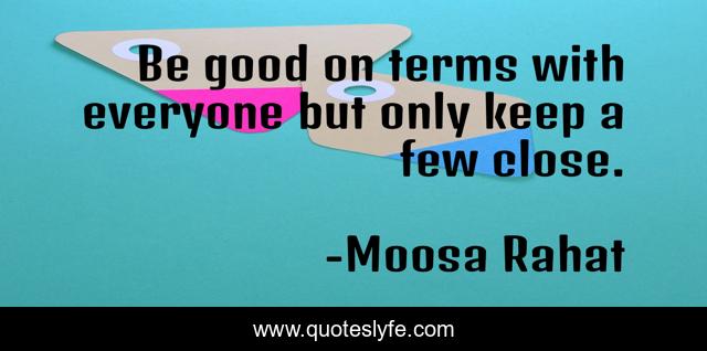 This page presents the quote "Be good on terms with everyone but only keep a few close.". Author of this quote is Moosa Rahat. This quote is about close, good, keep,.