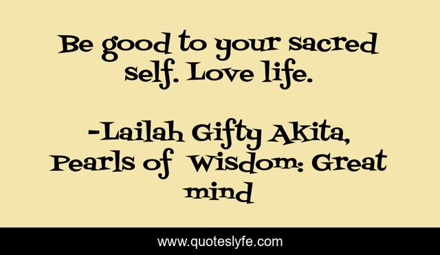 "Lailah Gifty Akita, Pearls of Wisdom: Great mind Quotes." Quoteslyfe.com, 2025. Sat. 06 Dec. 2025. <https://www.quoteslyfe.com/quote/Be-good-to-your-sacred-self-Love-94834>.