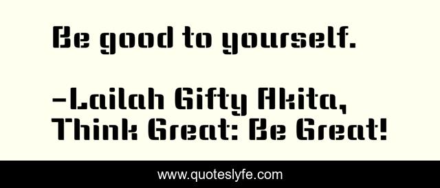 "Lailah Gifty Akita, Think Great: Be Great! Quotes." Quoteslyfe.com, 2025. Sun. 07 Dec. 2025. <https://www.quoteslyfe.com/quote/Be-good-to-yourself-141715>.